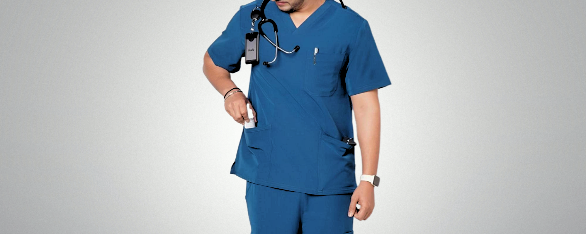 2 Pockets, 4-Way Stretch Scrub Top, Men