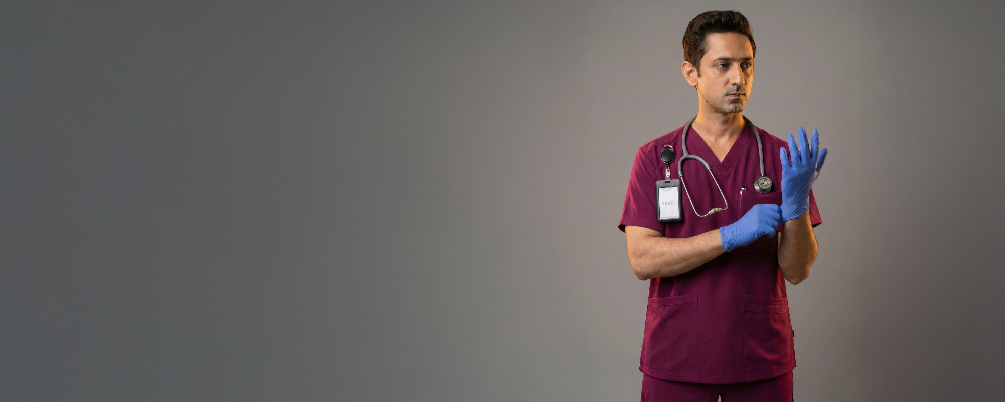 2 Pockets, 4-Way Stretch Scrub Top, Men